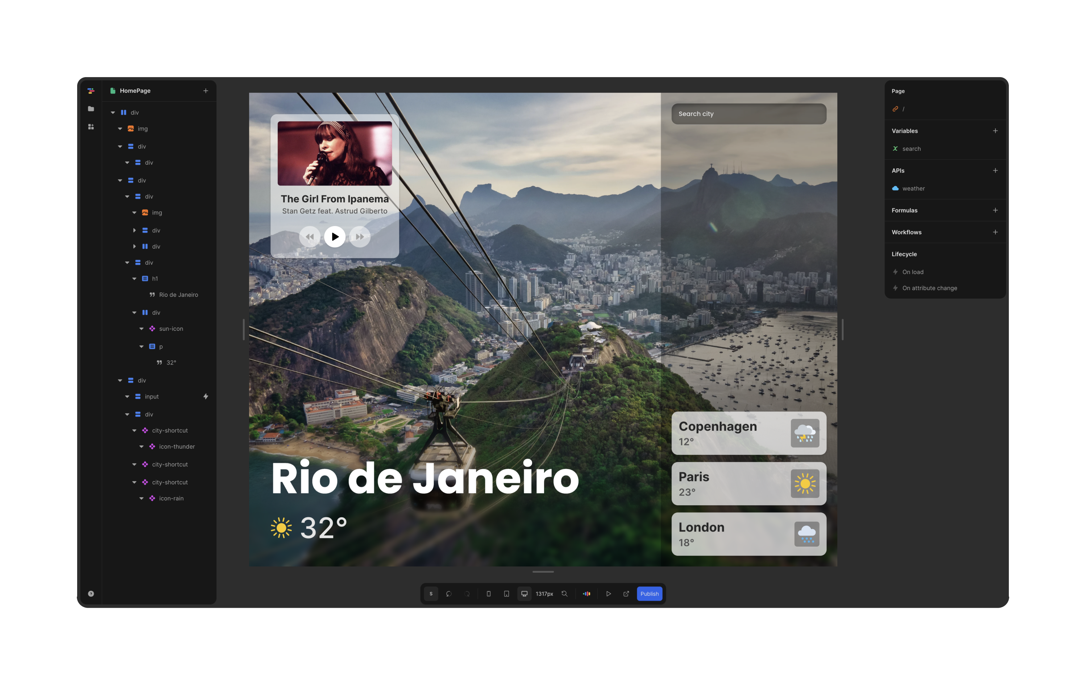 Really well-thought-out editor that makes it easy to create stunning UI's for web apps.