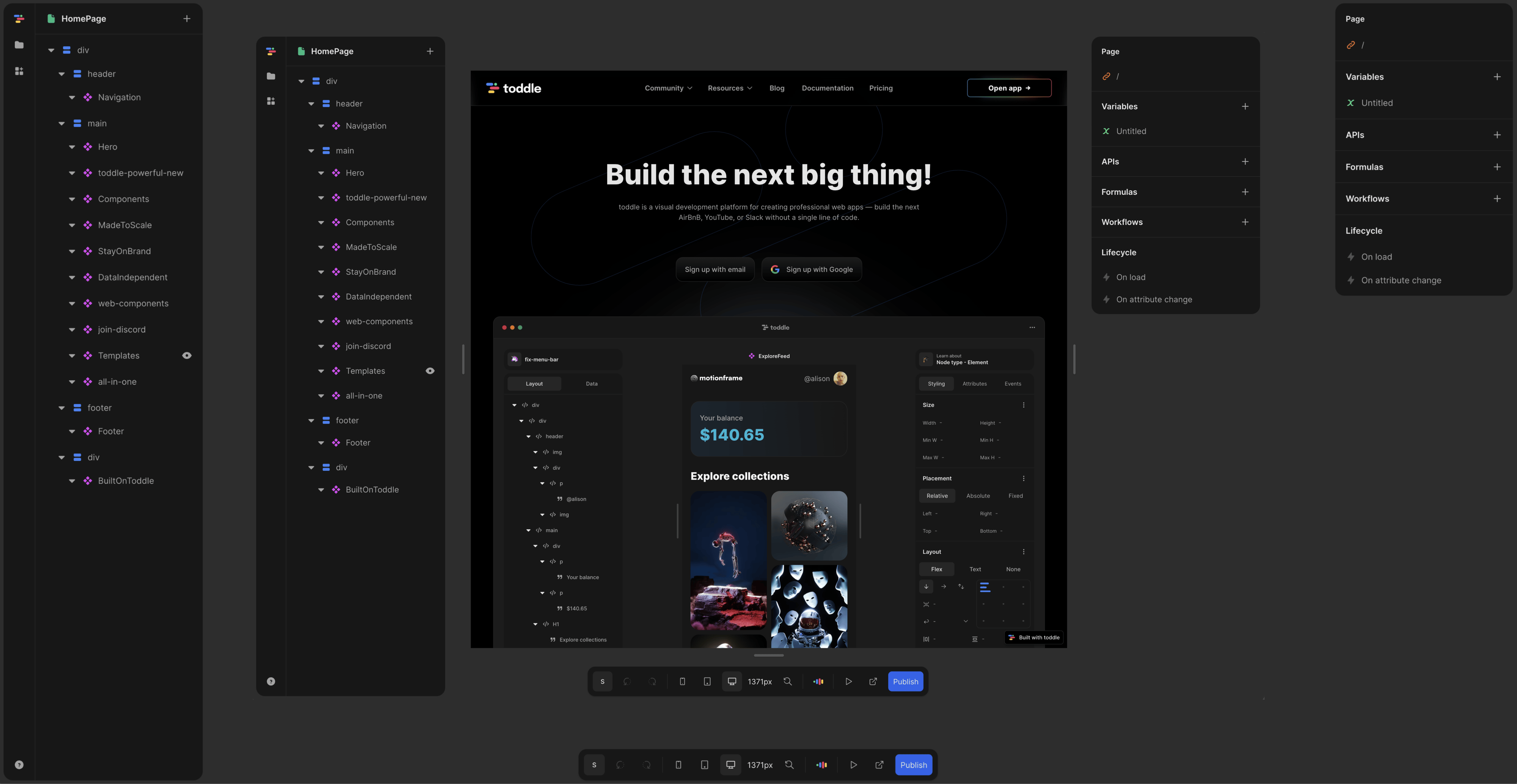 Imagine an experience like creating components and interfaces with Figma, but with the ability to turn them into real web apps. It's called @toddledev.
